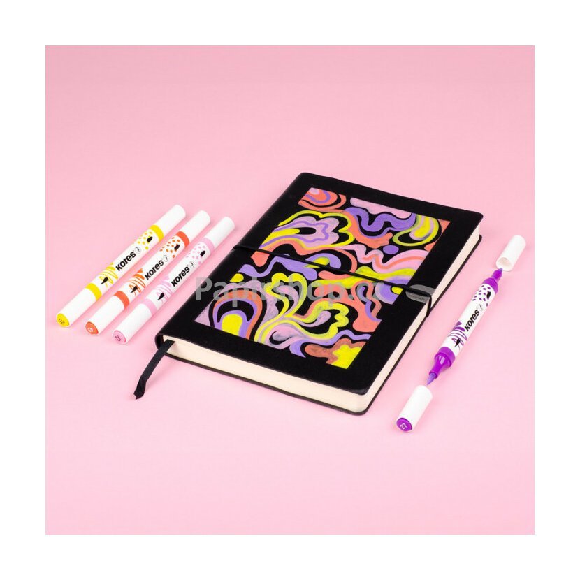 Nekonečné možnosti kreativního tvoření s akrylovými popisovači Kores, které kombinují štětcový a kónický hrot.