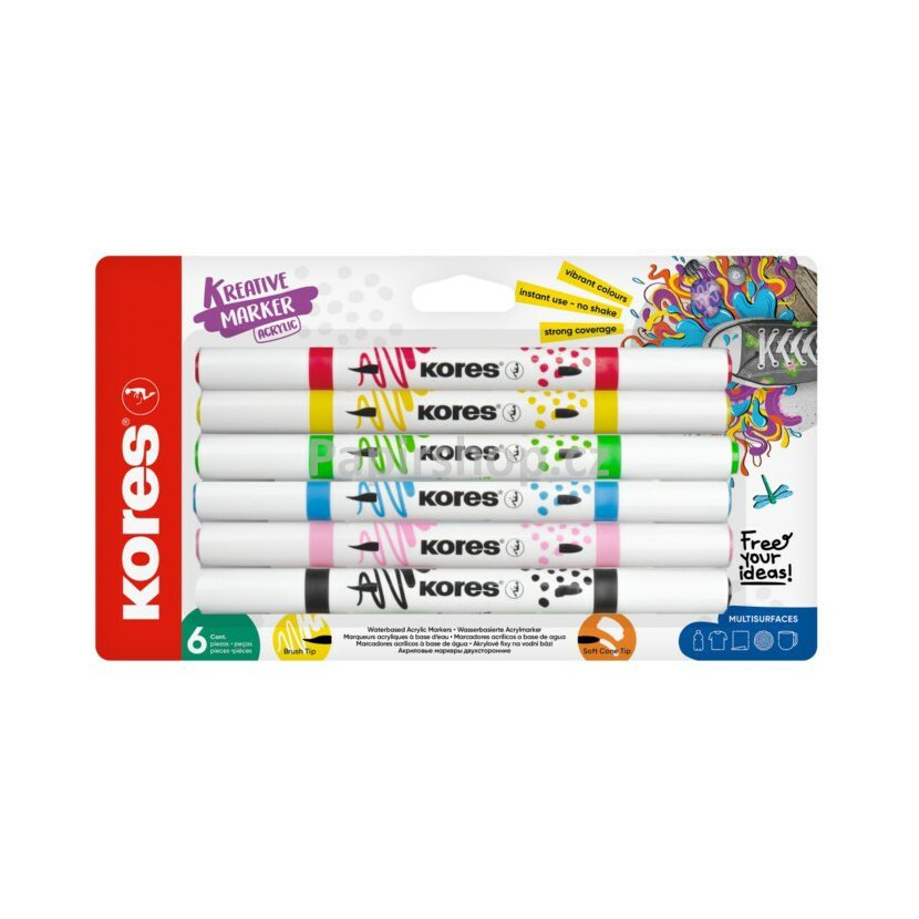 Nekonečné možnosti kreativního tvoření s akrylovými popisovači Kores, které kombinují štětcový a kónický hrot. Jsou ideální pro kreslení, psaní i práci s jemnými detaily.