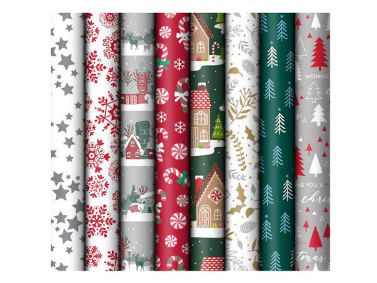 Přeneste se do světa zasněžených Vánoc s tímto kouzelným vánočním balicím papírem v roli. Je dostupný v osmi nádherných motivech v tradičních barvách červené, zelené, bílé, šedé a zlaté. Najdete mezi nimi sněhové vločky, hvězdy, zimní vesničky, perníkové chaloupky i větvičky s jehličím.