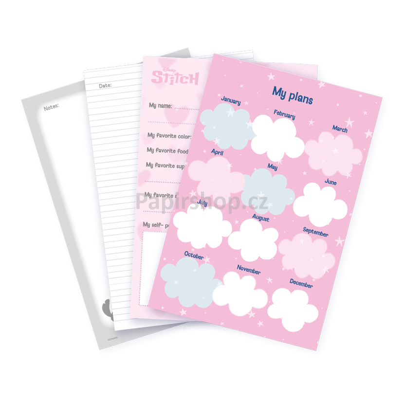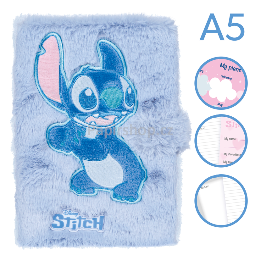Plyšový zápisník Stitch – formát A5, měkký plyšový obal s motivem Stitche. Velikost ideální do školy i na cesty, krásný hmatový zážitek, praktické i krásné