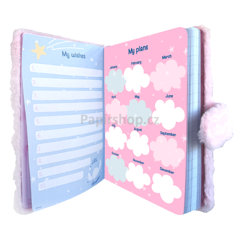 Stylový zápisník v atraktivních deskách, který schová veškeré tajnosti a přání malých slečen. Kromě personalizovaných stránek obsahuje i linkované a čisté listy pro vlastní poznámky. Uzavírání na suchý zip/druk brání nechtěnému otevření. Praktická velikost umožňuje mít deník stále u sebe.