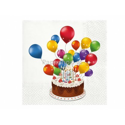 Oslava bez balónků a dortu? Nemožné! Tento ubrousek vám přinese oboje najednou – zářící dort se svíčkami a pestrou hromadu balónků, které k narozeninám prostě patří. Stačí prostřít a hned je jasné, že se slaví.